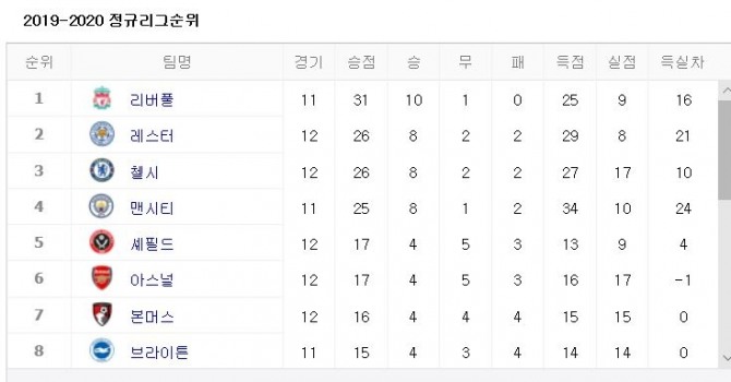Epl 프리미어리그 순위 보니 토트넘 1위 맨체스터 형제 어느덧 상위권 등극 축구 스포츠 기사본문 싱글리스트
